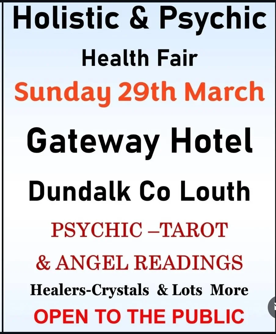 Anam Cara Healing will be at the Gateway Hotel Dundalk on Sunday 29th of March 2026, from 11am to 6pm for the Holistic and Psychic Fair. We look forward to seeing you there!
